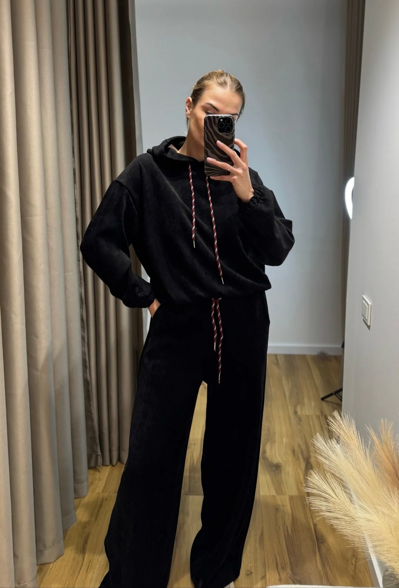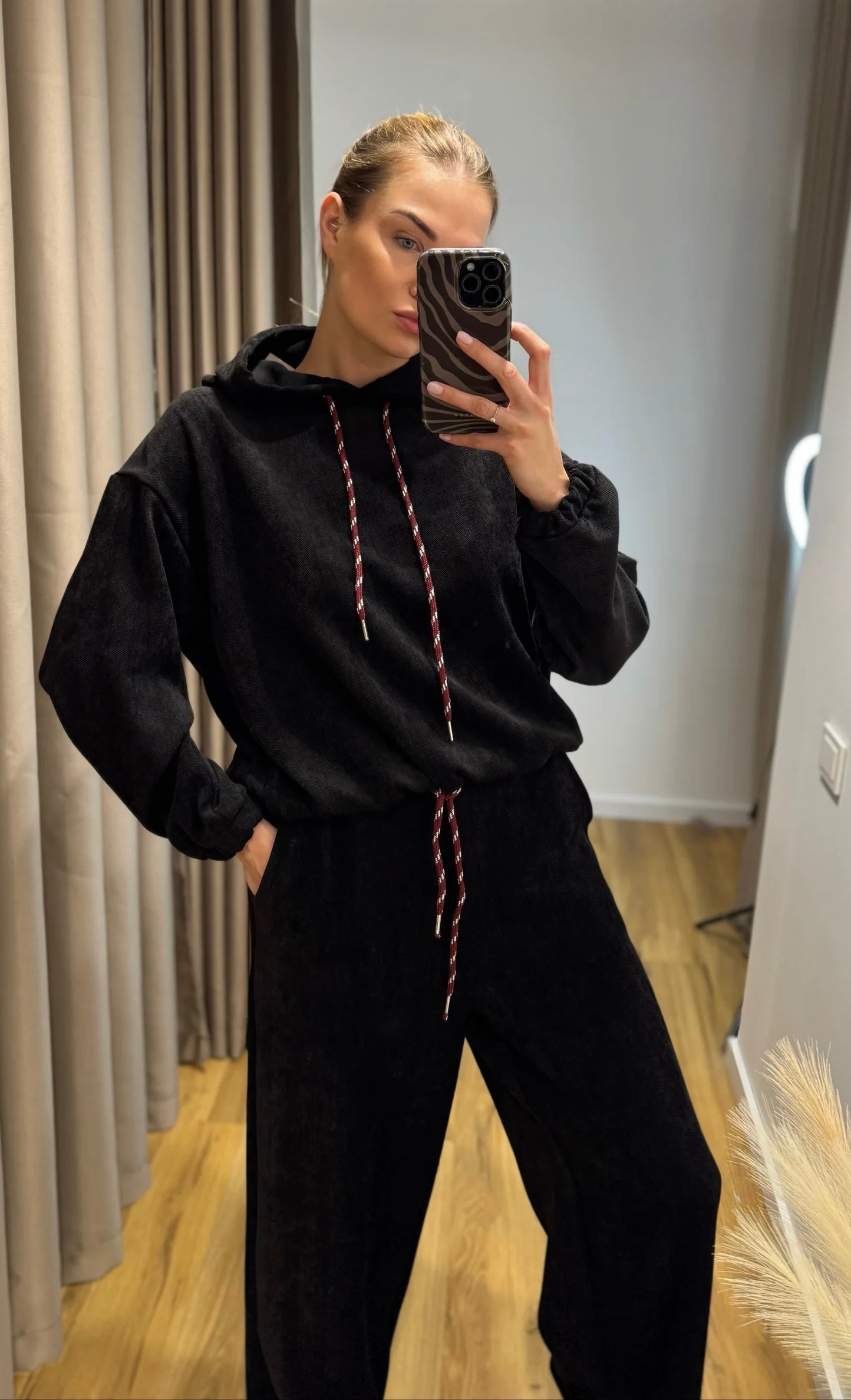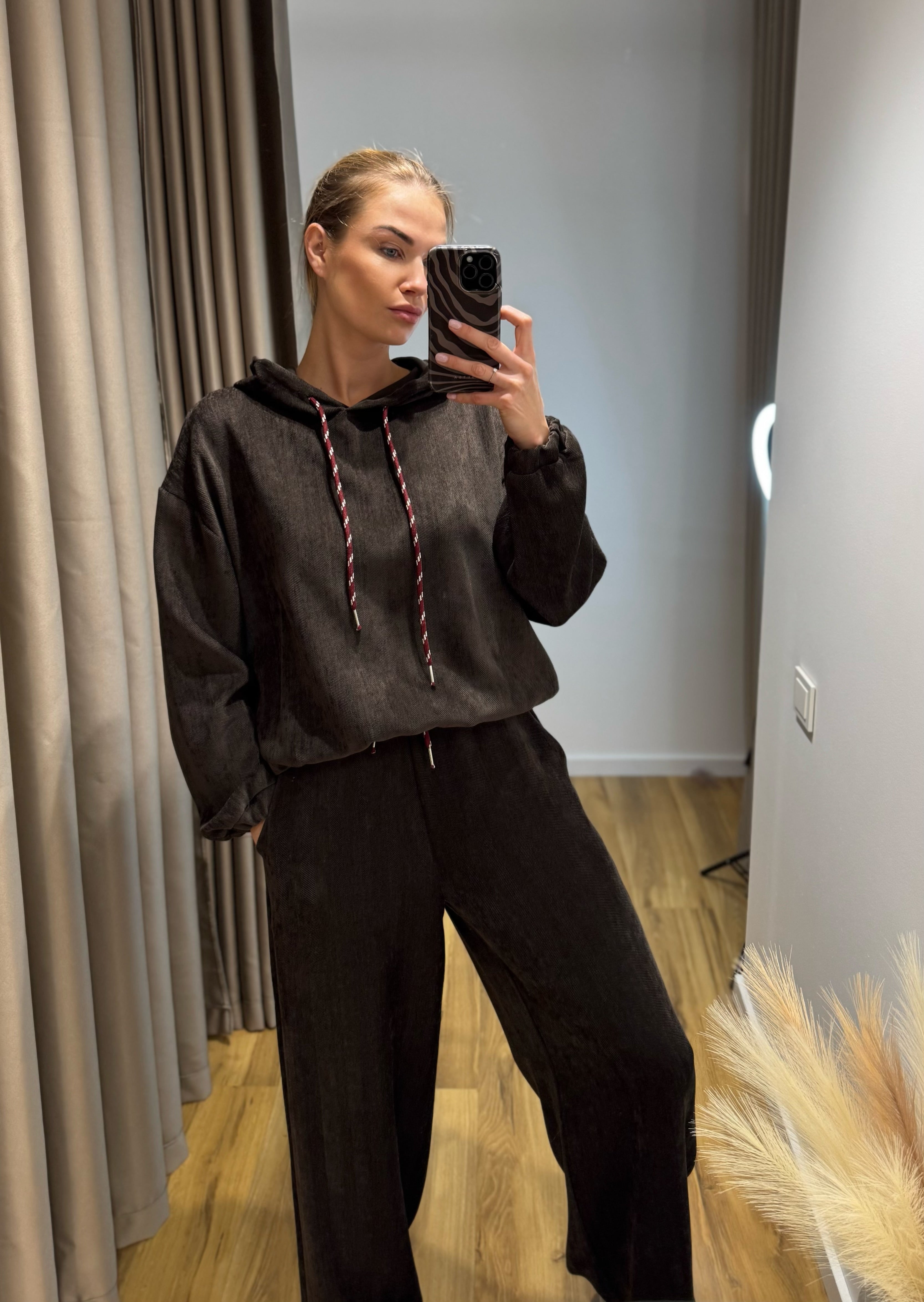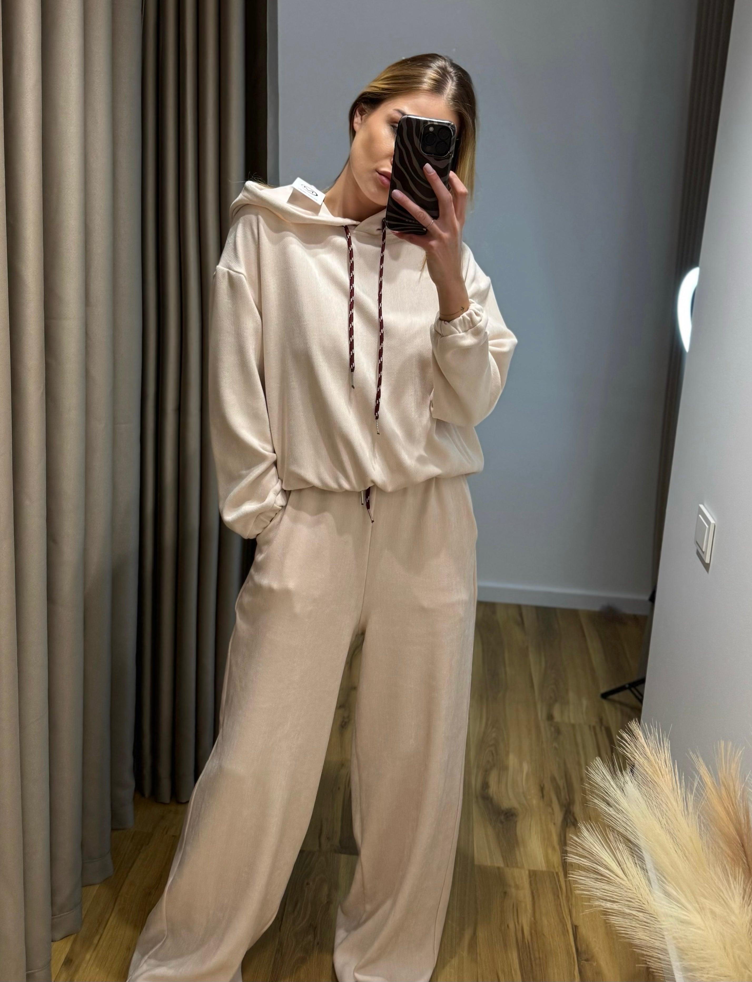 Minkštas, universalus ir prašmatnus – „Myastreet“ aksominis komplektas: džemperis su gobtuvu ir ilgos kelnės su raištukais ties juosmeniu. Pagaminta Italijoje✨