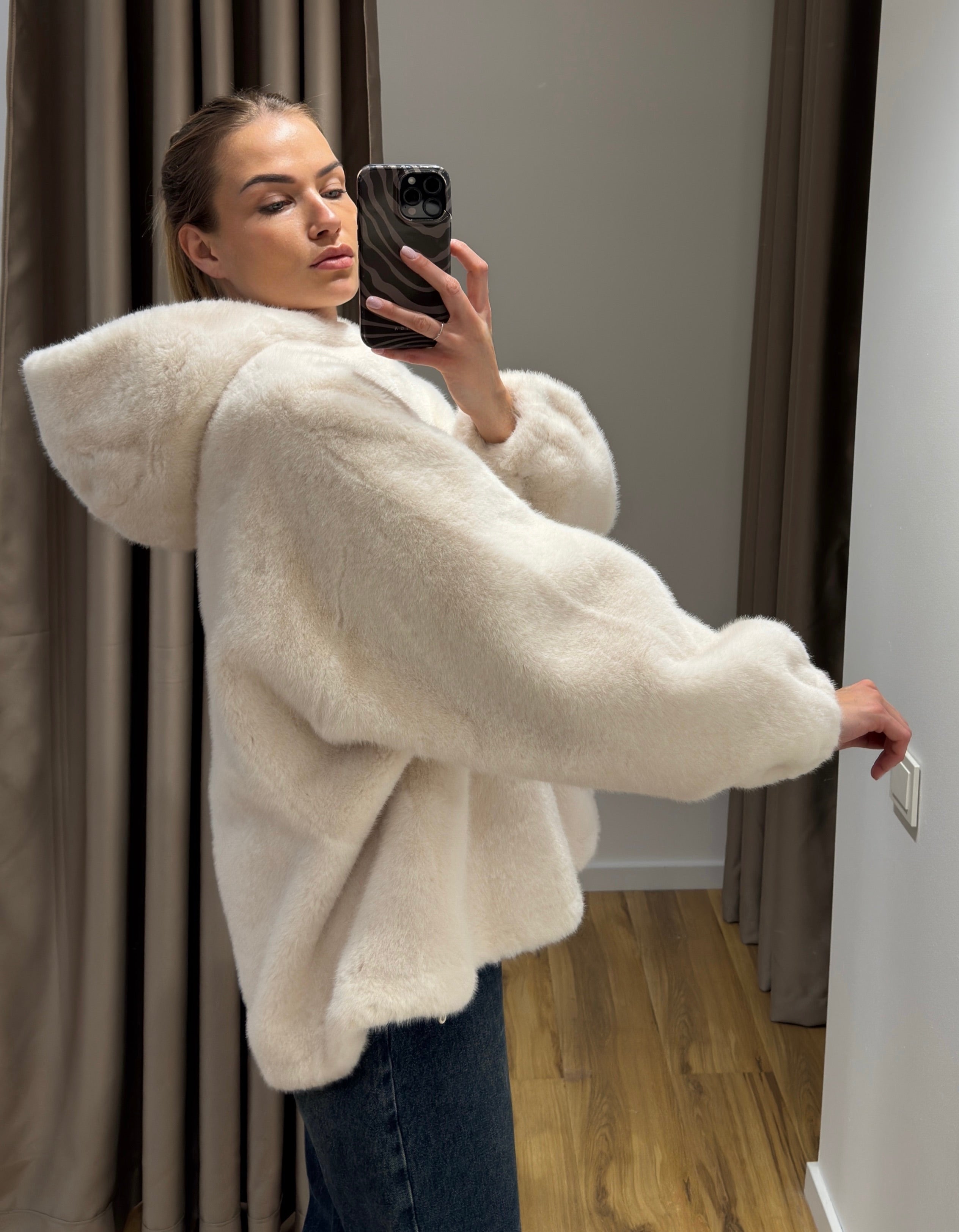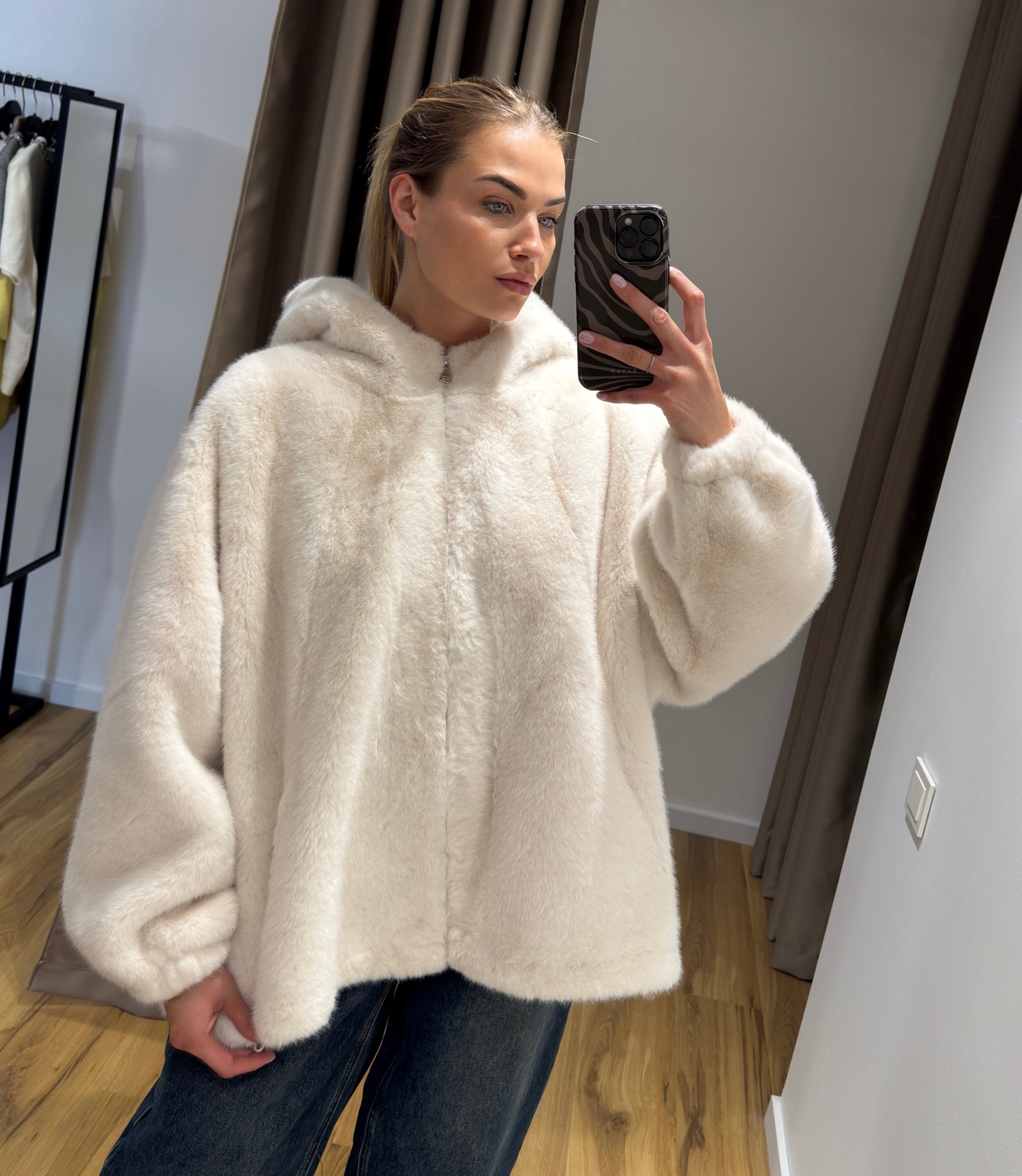 Dirbtinio kailio kailinukai su gaubtuvu. Itin šilti ir sunkūs, iš vidaus zomšinis pamušalas ✨